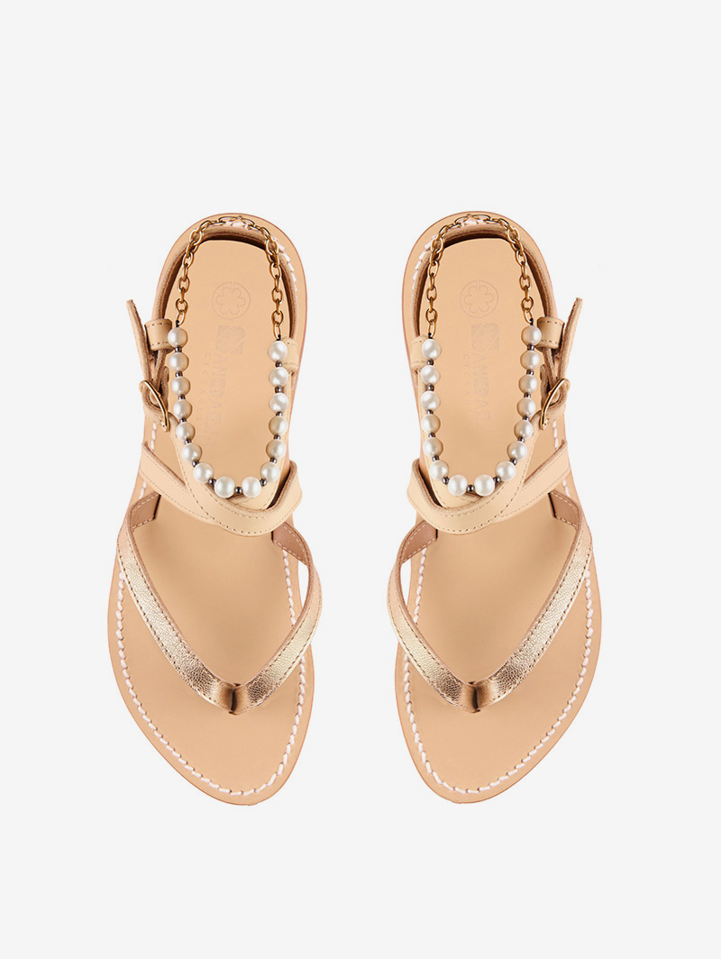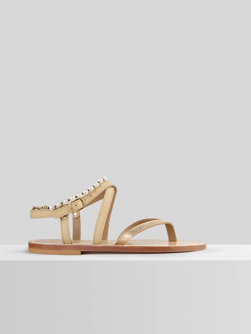 An iconic design from our early days, the Persephone sandal is reimagined in a chic new version, adorned with a delicate pearl jewel.